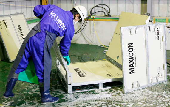内袋式コンテナのマキシコンなら、全国7ヵ所にあるサービスセンターで洗浄・メンテナンスを終えたコンテナを出荷します。C社様の場合、洗浄作業にかかる人件費はもちろん、洗剤・水道費等のコストも削減でき、大きな業務改善を実現することができました。