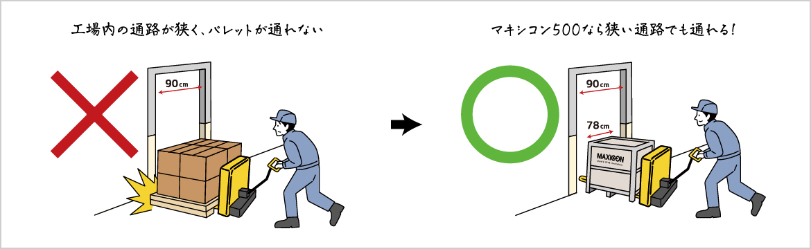 マキシコン500は780mm幅。通路幅が狭い場所でも取り回しが可能!